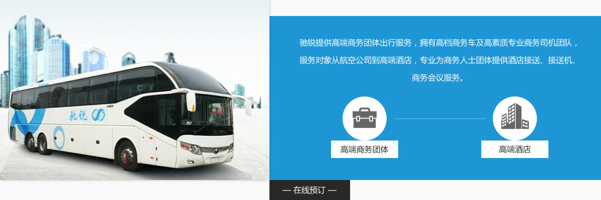 馳銳提供高端商務(wù)團(tuán)體出行服務(wù),擁有高檔商務(wù)車(chē)及高素質(zhì)專(zhuān)業(yè)商務(wù)司機(jī)團(tuán)隊(duì),服務(wù)對(duì)象從航空公司到高端酒店,專(zhuān)業(yè)為商務(wù)人士團(tuán)體提供酒店接送、接送機(jī)、商務(wù)會(huì)議服務(wù)。